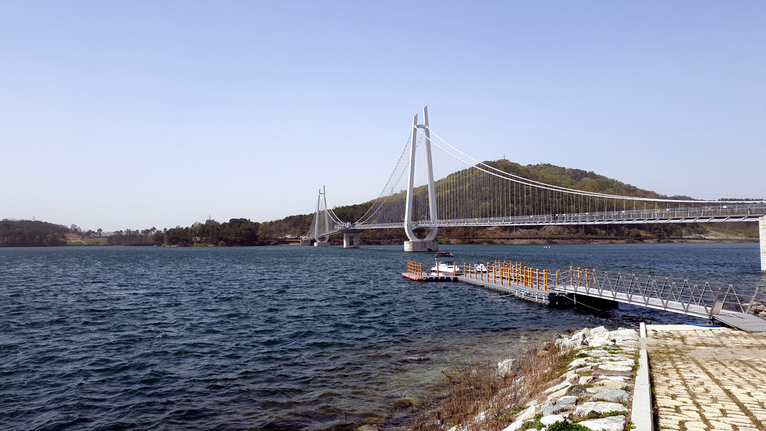 국내 최장 길이 600미터를 자랑하는 탑정호 출렁다리....
