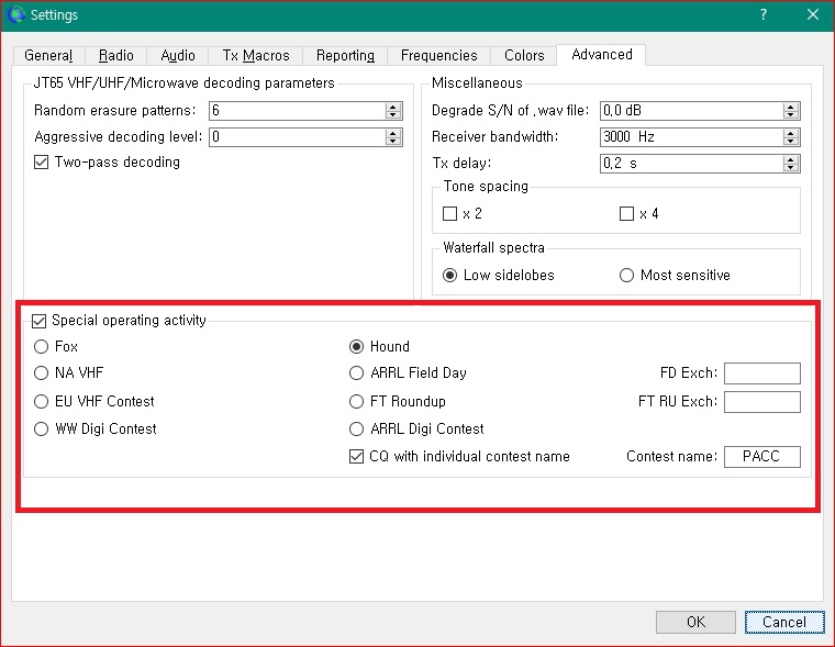 (사진 #2)▶ WSJTX(FT8) 프로그램에서 하단 왼쪽의 (H, FT8, FT4) 등등.. 을 클릭해서 모드 변환을 합니다.