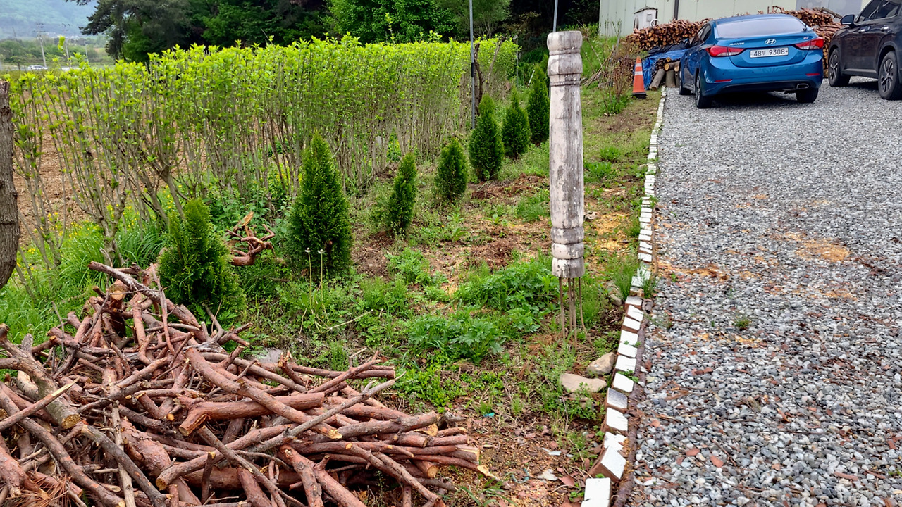언덕배기의 소나무들도 이발(?)을 하고 질컥벌컥한 마당에 하얀 자갈이 깔리고