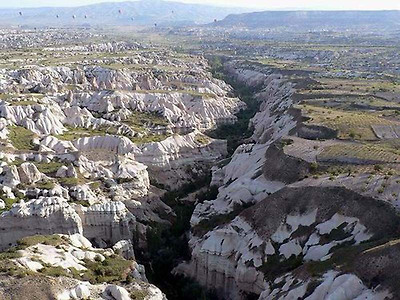 우치사르의 성(castle) 꼭대기에서 바라본 전경 우흘라라 계곡(Ihlara Valley) 절벽의 높이가 100여 미터에 달하는 이 계곡에는 맑은 시냇물을 따라수많은 교회와 비둘기 집, 오래전 여행객들이 머물던 장소와한가로이 농사일을 보는 아저씨의 모습도 볼 수 있는 곳입니다. 전체 길이가 15km 이상이지만 일반적으로 관광객들은매표소가 있는 곳에서 2~3km 정도를 걷게 됩니다.시간적인 여유가 있는 사람은바위를 넘어 계곡을 따라 쭉 하이킹을 해도 좋다고 합니다.