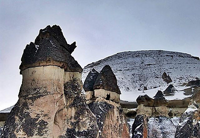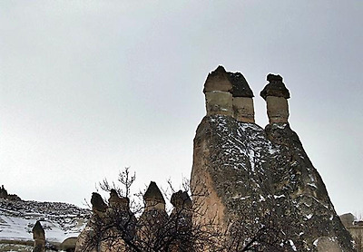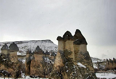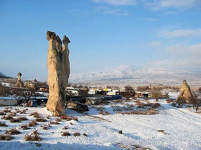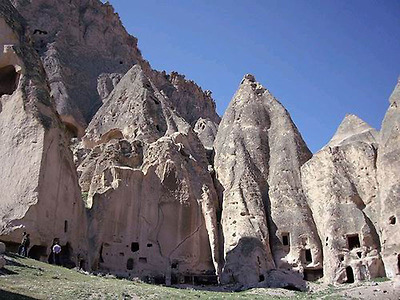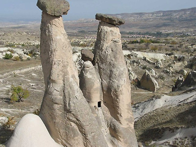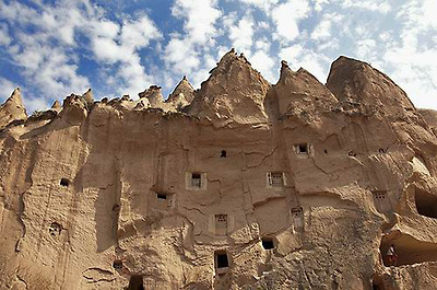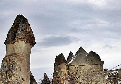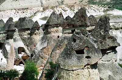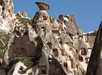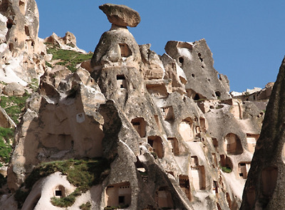 파샤바의 세 쌍둥이 버섯바위 그러나 인간은 자연이 연출한 신기한 형상에 한 가지 기이를 더 보탰다. 버섯 모양의 바위에 굴을 파고 들어가 살았던 것이다. 이곳의 버섯바위들은 마치 골다공증에 걸린 환자의 뼈처럼 구멍이 숭숭 뚫려 있다. 이 구멍들이 모두 인간이 거주했던 흔적이다. 이런 암굴집은 기원전부터 유래가 시작되어 1950년대까지도 사람들이 이 버섯 모양의 집에서 살았다. 카파도키아가 유네스코가 정한 세계의 자연과 문화 복합유산으로 지정된 것도 이 때문이다.