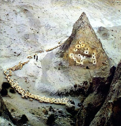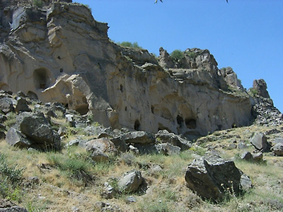 수백만년전 활화산이었던 예르지예스산(3917m)에서 이 지역에 살던 사람들은 이러한 바위를 깎고 동굴을 만들어