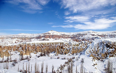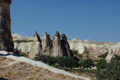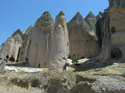 카파도키아를 한마디로 표현하자면신이 만든 예술의 경지라고 극찬할 정도로 아름다운 곳입니다. 마치 동화 속에서나 볼 수 있음직한 버섯 모양의 기암괴석 사원들을 찾아보기는 힘듭니다. 대신 원뿔을 엎어놓은 듯한 용암층 바위 속에 마련되어 있는 이 곳 사람들의 터전들을 대할 때비로소 카파도키아의 참 매력을 느낄 수 있습니다.