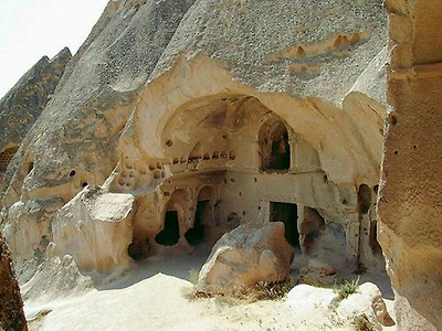 네브세히르 동굴내무 젤베 (Zelve)젤베 역시 괴레메 야외 박물관과 비슷한 모양새로 초기 기독교인들이 로마와 아랍 정복자들로 카파도키아에서 가장 아름답고 다양한 수도원들을 볼 수 있으며, 특히 파샤바 지역이 백미로 꼽힌다. 이곳의 바위속 동굴 수도원들은 높이가 15-20M로 각기 다른 세 개의 꼭대기들이 있는 것이 특징이다.