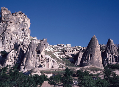 우치사르 (Uchisar)마을의 꼭대기에 오래된 성터가 있는데이곳에서 내려다 보이는 통과해서 올라가야합니다.지금은 조그만 마을로 성으로 올라가는 길에 많은 팬션이 있지만 물이 넉넉하지 못하여 문 닫은 곳이 많다고 합니다. 괴레메에서 3km 떨어진 곳이라 계곡을 따라 우치사르로 갈수도 있고아니면