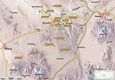 카파도키아는 지도에 나오는 도시명이 아니고,터키(Turkey)의 수도인 앙카라(Ankara)에서 남쪽으로300Km 가량 떨어진 곳에 위치한아나톨리아(Anatolia) 고원의 남동부 일대를 말하는데,동쪽 카이세리(Kayseri)부터 서쪽의 악사라이(Aksaray), 북쪽의 하치벡타쉬 (Hacibektas),그리고 남쪽의 니그데(Nigde) 까지 매우 광할한 구역입니다. 높아져서결국 아르메니아(Armenia)고원으로 이어지는 매우 광대한 지역입니다.
