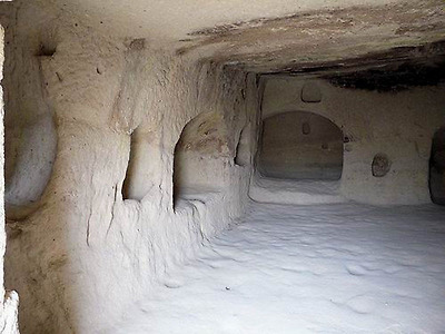 계곡쪽으로 200~300미터 걸어 내려가면 또다른 지하 도시가 나타납니다. 이 지하 도시는 비잔틴 시대에 수도사들이 사용했다고 하는데 작은 사각의 방이 매우 좁고 깊은 터널에 의해 연결되어 있습니다. 지하동굴 주위로 많은 수의 오래된 교회가 들어서있고 복구 공사가 진행중이라고 합니다.