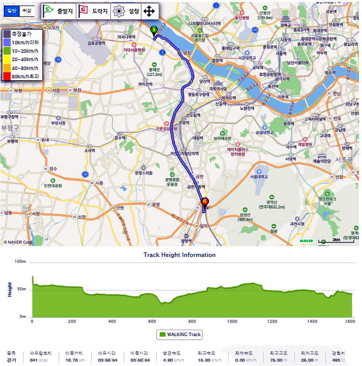 9호선 가양양역을 출발하여 1호선 석수역까지 약 18.77km에 도전..