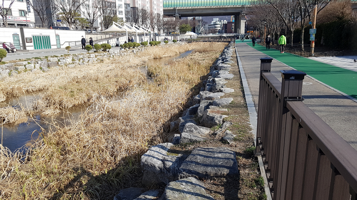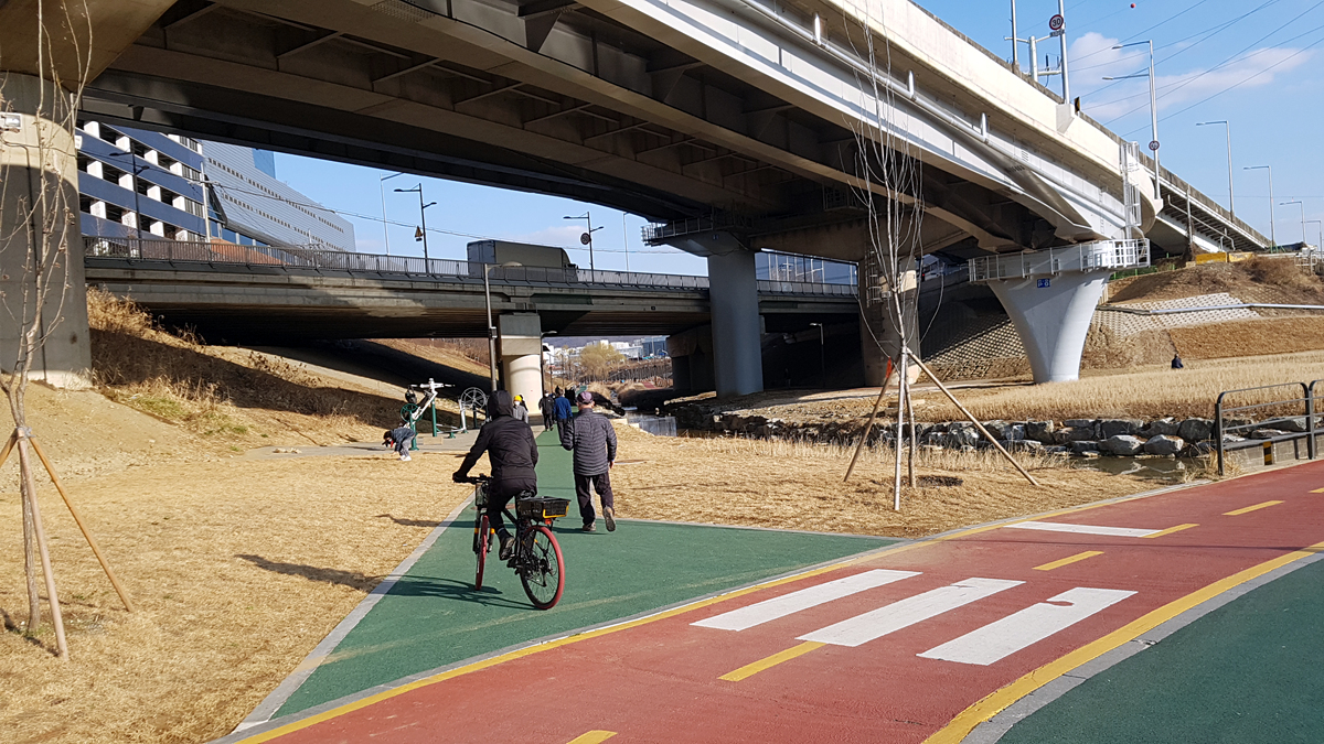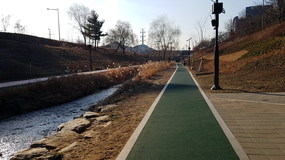 장지천으로 빠져 탄천을 건너 수서역까지의 25km를 상회하는 길...