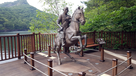 하동주차장에서 호수로 오르는 길목에서 궁예 기마상..